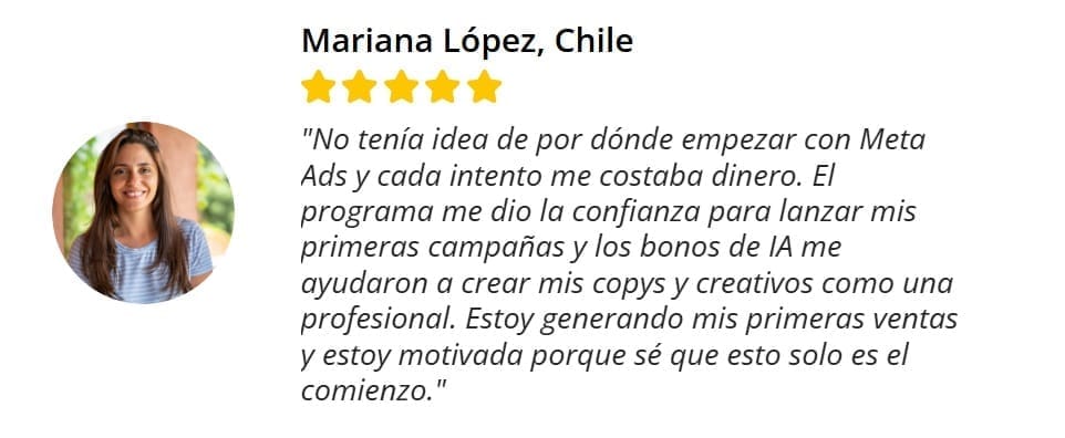 ➡️ Acceso a una Metodología Probada: No pierdas tiempo con teorías. Nuestra área de miembros incluye más de 70 lecciones detalladas, desde lo más básico (configurar tu Business Manager e instalar el píxel) hasta estrategias avanzadas como el remarketing y el escalamiento de campañas con presupuesto controlado.
